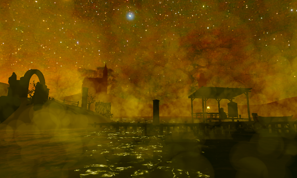 My goal for this project was to work with a dark yet vibrantly lit environment. To do this I darkened the ambient occulsion as well as adjusting the color grading to use less blues and adding them back after to the whole image. Since light shafts aren’t a feature of Unity3D, I found some in a free graveyard asset pack on the Unity Asset Store.