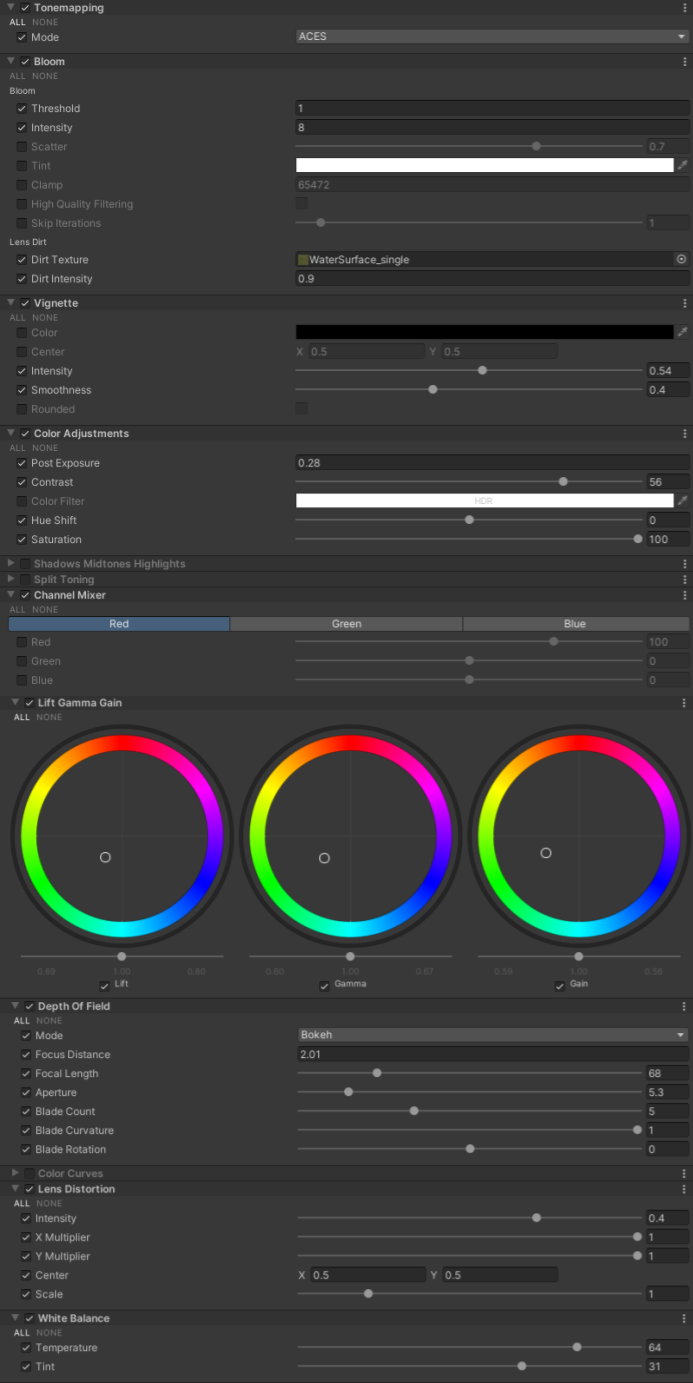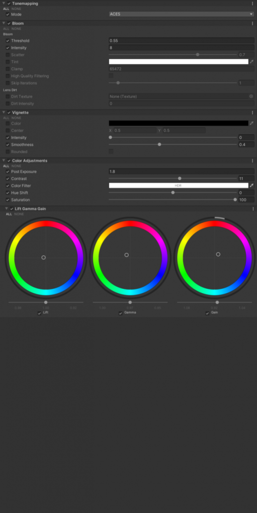 Additionally, the implementation of filmic ACES tonemapping enriched the visual experience by boosting contrast and color depth, aligning with the dark tone of the game. This tonemapping helped to enhance both the lighting and the overall atmosphere, making light sources feel more intense and shadows more ominous, amplifying the player’s sense of immersion and interaction with the world. Overall, the combination of lighting and post-processing significantly elevated the gameplay experience in “A Hand Against Time.”